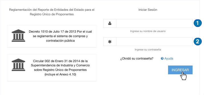Para ingresar al sistema de Reporte de Entidades del Estado RUP ingrese la siguiente dirección https://ree.rues.org.co/ree/account/login en la barra de navegación de su explorador.