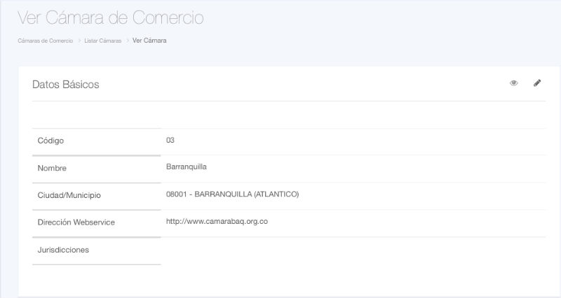 En esta ventana podrá ver la información más detallada de la cámara de comercio seleccionada.