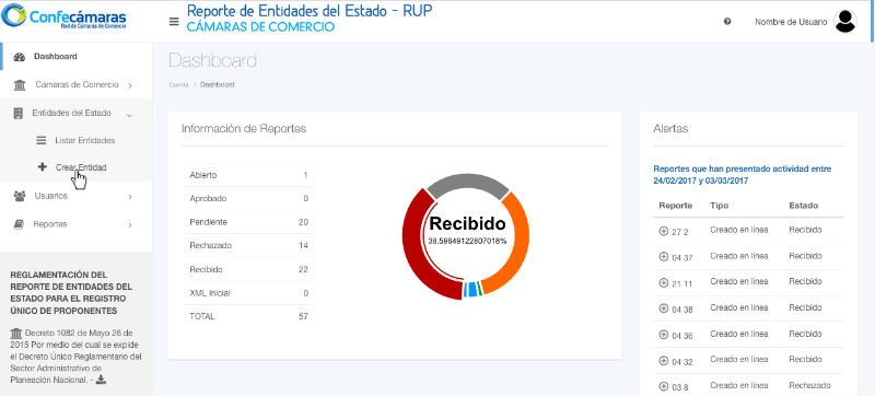 Para agregar una entidad del estado de comercio ingrese en el menú de la izquierda Entidades del Estado y haga clic en Crear Entidad.