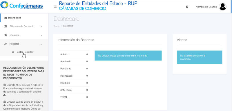 Haga clic en la opción Listar Reportes después de haber desplegado el menú de Reportes que se encuentra a la izquierda, para ver la lista de reportes.